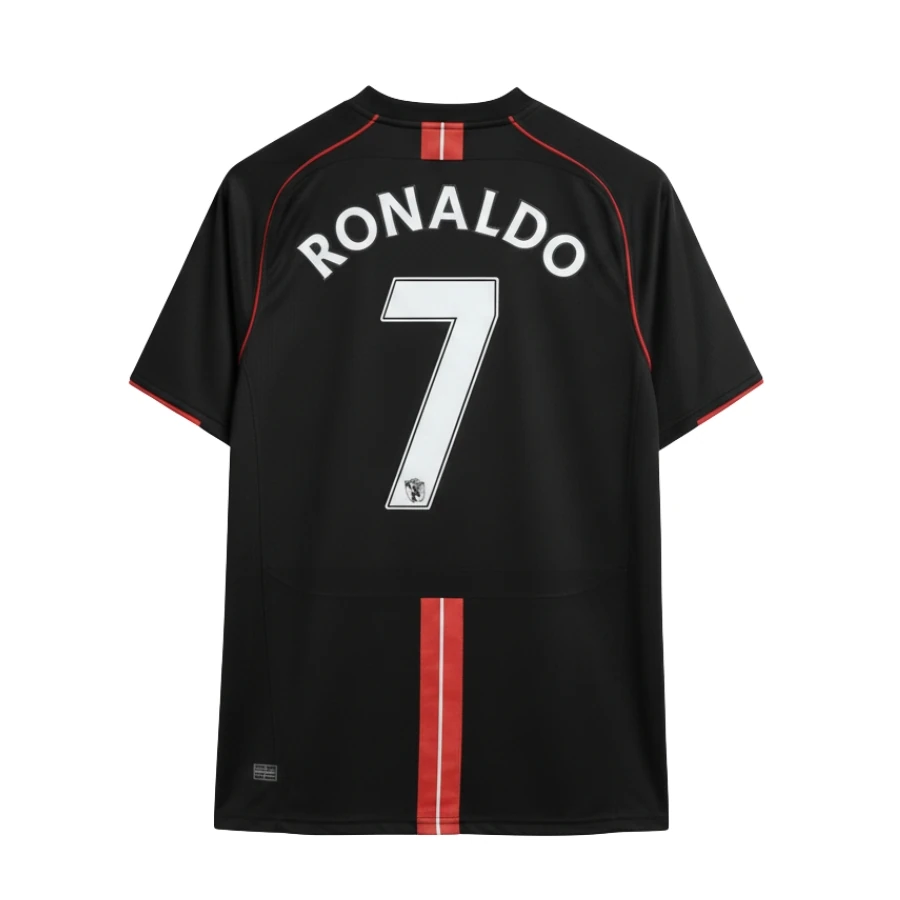 Relive the glory of one of Manchester United’s most iconic seasons with the 2007-08 Black Away Shirt. Worn by legends like Cristiano Ronaldo, Wayne Rooney, and Ryan Giggs, this shirt represents the season United conquered both the Premier League and the UEFA Champions League.