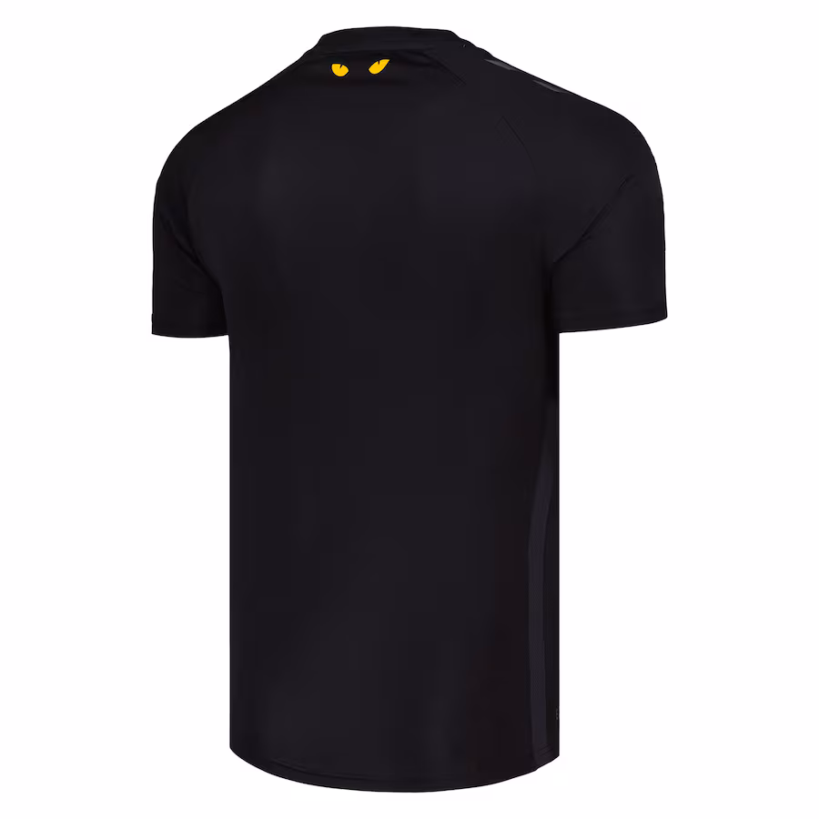 The shirt’s collar design adds an unexpected pop of personality. Subtle yellow cat’s eyes stare out from the back neckline, an homage to Sunderland’s historic nickname, the Black Cats. Inside the collar, a nod to the club’s history — referencing the early 1800s and the origins of the nickname — offers a thoughtful detail for fans who know their heritage.