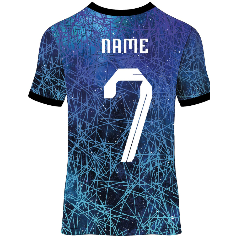 Featuring striking linear graphics across the body, the shirt adds a futuristic, bold aesthetic that sets it apart from traditional home, away, and third kits. -